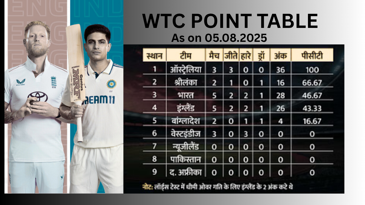 WTC POINT TABLE : टीम इंडिया के पास है सुनहरा मौका – क्या इस बार आएगा हिसाब बराबर?